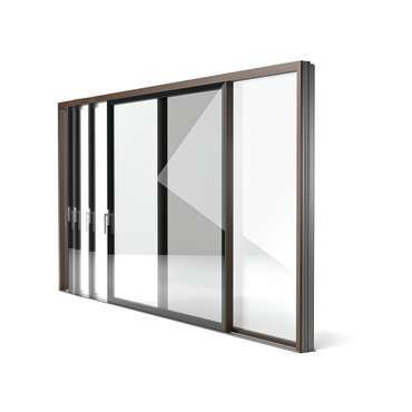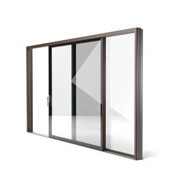 En option, l’ouvrant de la porte levante-coulissante peut être revêtu complètement de de verre côté extérieur et/ou intérieur.
